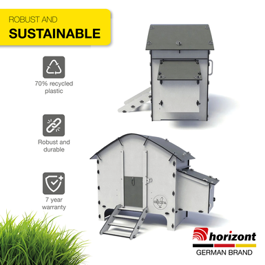 Made from 70% recycled plastic, the Harmony coop combines durability with an environmentally conscious lifestyle. So you not only make your chickens happy - but also nature.