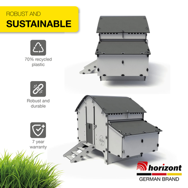 Made from 70% recycled plastic, the Harmony coop combines durability with an environmentally conscious lifestyle. So you not only make your chickens happy - but also nature.