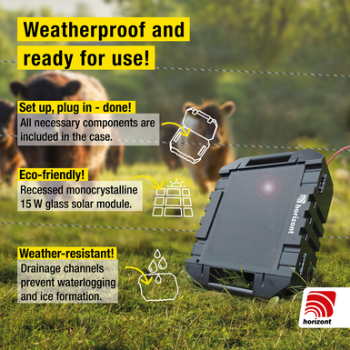 12 V solar energiser in a practical case system including battery - the flexible and environmentally friendly solution for your grazing animals