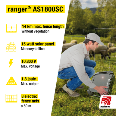 horizont 12 V solar energiser - ranger ® AS1800SC