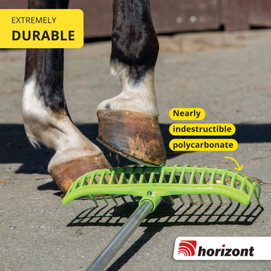 With a working width of 40 cm and 18 angled tines, the V-Fork ensures efficient mucking out - shavings and manure can be picked up quickly and cleanly. The sturdy construction made of virtually unbreakable polycarbonate and the robust handle made of lightweight aluminium make the fork particularly durable - even with daily, intensive use in the stable or outdoors.