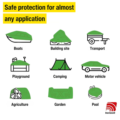 The horizont tarpaulin is the ideal solution when it comes to protecting your valuable items from wind, rain, sun and dust. Whether cars, garden furniture, wood piles, sandpits or swimming pools - this versatile tarpaulin offers comprehensive protection for numerous outdoor applications.