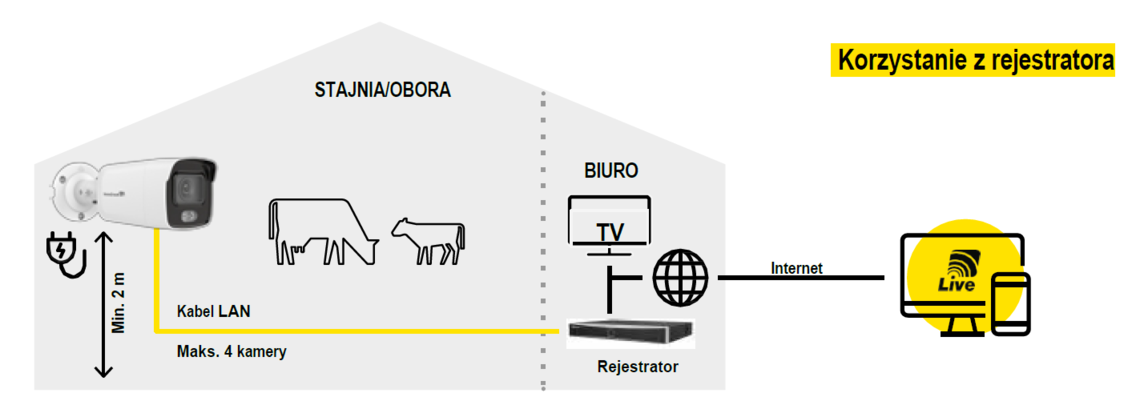 Kamery horyzont zasilane są za pomocą technologii PoE (Power over Ethernet), co oznacza, że zasilanie i przesył danych odbywają się przez jeden kabel LAN. To rozwiązanie oszczędza miejsce i upraszcza instalację, ponieważ nie ma potrzeby prowadzenia oddzielnego okablowania zasilającego. Jeśli nie ma wystarczającej liczby portów PoE w sieci, można zastosować alternatywne źródło zasilania, takie jak zasilacz, który jest dostępny od firmy Horyzont. W przypadku różnych warunków użytkowania zaleca się również użycie przełącznika 6-portowego, aby zapewnić odpowiednią moc dla podłączonych kamer. Dzięki zastosowaniu PoE, kamery IP mogą być łatwo podłączane do sieci i zasilane jednocześnie, co znacząco ułatwia ich instalację i eksploatację. W tym celu prosimy o kontakt z naszym działem obsługi klienta .