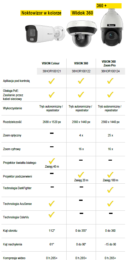 W tym przeglądzie możesz wyraźnie zobaczyć, jakie funkcje oferują nasze trzy kamery