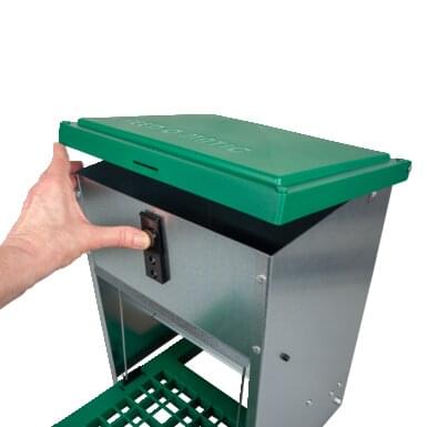 Karmnik Feedomatic dla drobiu jest wykonany z wysokiej jakości ocynkowanej blachy, dzięki czemu jest odporny na rdzę i warunki atmosferyczne - idealny do użytku na zewnątrz!