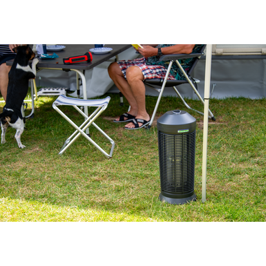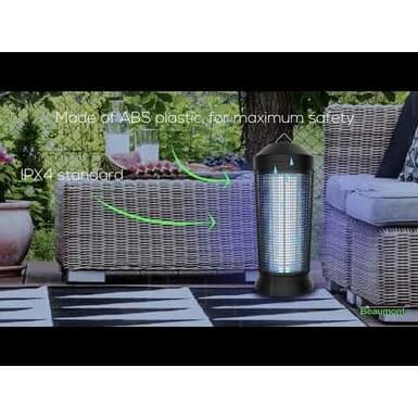 Ten środek owadobójczy przyciąga komary i muchy za pomocą światła UV. Owady są zabijane, gdy dotkną wewnętrznej naelektryzowanej (wysokonapięciowej) siatki. Do użytku domowego i komercyjnego. Średnia żywotność lampy: 8000 godzin.