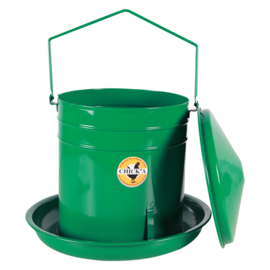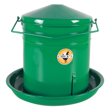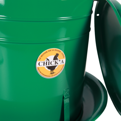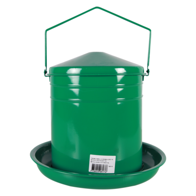 Powlekany żywicą epoksydową metal sprawia, że idealnie nadaje się do stajni i wybiegu. Karmnik ma pojemność 10 litrów i może jednocześnie karmić 8 kurcząt. Ponadto powlekany metal sprawia, że karmidła są odporne na warunki atmosferyczne, co zapewnia właścicielom zwierząt gospodarskich dłuższą żywotność. Napełnianie jest bardzo łatwe dzięki zdejmowanej pokrywie. Transport jest również bezproblemowy dzięki solidnemu uchwytowi do przenoszenia, zarówno napełnionych, jak i pustych. Uchwyt do przenoszenia ma również tę ogromną zaletę, że karmidło można zawiesić w dowolnym miejscu. Zwalnia to miejsce w stajni i na placu treningowym.