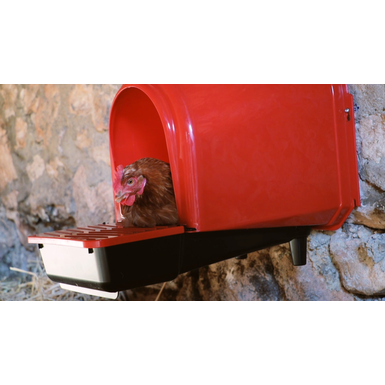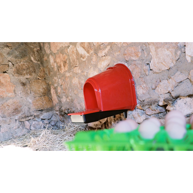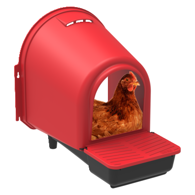 Oprócz nowoczesnego designu w jaskrawoczerwonym kolorze, gniazdo dla niosek imponuje innowacyjną i wygodną konstrukcją. Zaokrąglony i spadzisty dach gniazda zapobiega osadzaniu się kur na dachu, brudzeniu go i przeszkadzaniu kurom znoszącym jaja. Szczeliny na dachu gniazda zapewniają również wystarczającą wentylację i minimalizują dopływ światła, zapewniając komfortowe składanie jaj.