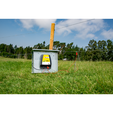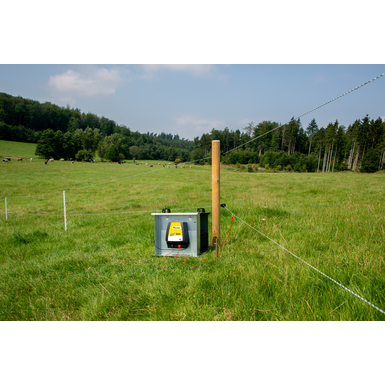 Ogrodzenie pastwiska, zasilacz, ogrodzenie i kabel uziemiający wchodzą w zakres dostawy.