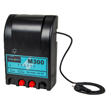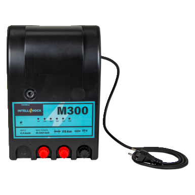 Elektryzator IntelliShock M300 jest zasilany z sieci i zapewnia zwierzętom absolutne bezpieczeństwo dzięki nieprzerwanej pracy i wysokiej energii wyjściowej. Potężne napięcie 10 500 V w połączeniu z siłą uderzenia 4,4 dżula charakteryzują nasz wysokowydajny elektryzator do ogrodzeń elektrycznych.