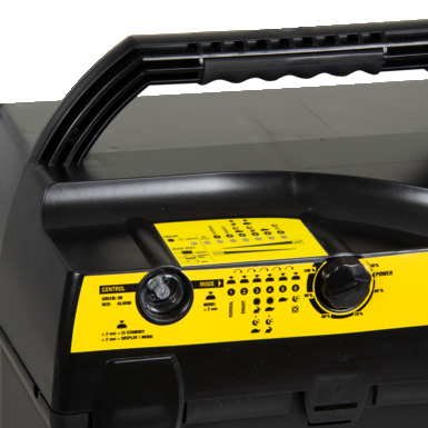 Praktyczny włącznik/wyłącznik na zasilaczu ogrodzenia znacznie upraszcza obsługę - koniec z majstrowaniem przy przełącznikach ogrodzenia lub wtyczkach. 3-stopniowy wyświetlacz LED "Energy Control" umożliwia szybkie sprawdzenie poziomu naładowania akumulatora i informuje o aktywności elektryzatora ogrodzeniowego, migając wraz z impulsem wyjściowym.