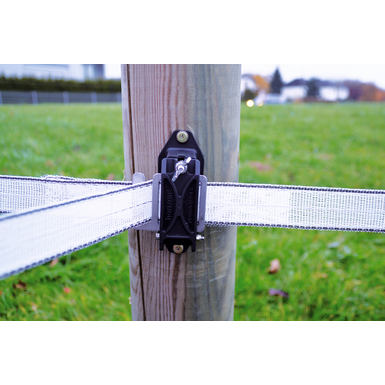 Izolator paskowy turbomax plus z płytą łączącą - uniwersalne rozwiązanie dla ogrodzenia pastwiska! Opracowany specjalnie dla rolników i właścicieli zwierząt, turbomax plus oferuje szeroki zakres zastosowań jako izolator sekcji, izolator początkowy i izolator narożny. Odpowiedni do taśm ogrodzeniowych do 40 mm, splotek do 4 mm i lin do 8 mm, ten izolator jest idealnym dodatkiem do każdego systemu ogrodzeniowego.