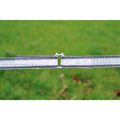 Ważna uwaga: Nie należy wiązać ze sobą plecionych taśm ogrodzeniowych! Może to spowodować pęknięcie przewodów i przerwanie przepływu prądu.