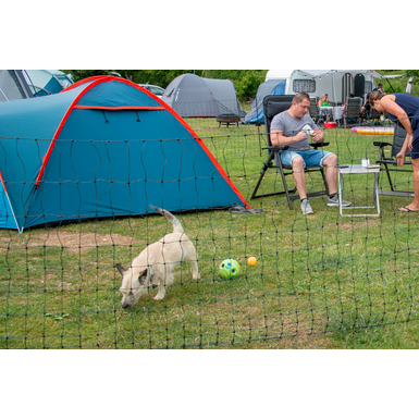 Kolejną zaletą jest wspomniany wcześniej montaż i demontaż siatki. Jest to dość szybkie i nieskomplikowane, wystarczy wbić stopą podwójne kolce w ziemię, a po użyciu wyciągnąć, zwinąć i schować. Oprócz stosowania jako ogrodzenie dla psów, ogrodzenie wtykowe może być również używane na kempingu, jako ogrodzenie ogrodowe lub dla innych zwierząt domowych, np. do ogrodzenia kurczaków.