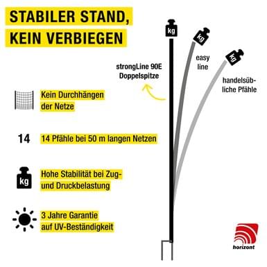Nowe ogrodzenie dla psów strongLine 90E od horizont zachwyca nowymi, wyjątkowo wytrzymałymi słupkami z włókna szklanego. W oparciu o cenne opinie klientów byliśmy w stanie jeszcze bardziej ulepszyć nasze ogrodzenia dla psów.