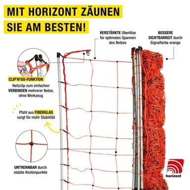 Dzięki wysokości 90 cm i długości 50 m siatka oferuje szybki i nieskomplikowany sposób ogrodzenia psów i innych zwierząt domowych.