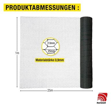 Dzięki oczkom o rozmiarze 13 x 25 mm ogrodzenie zapewnia optymalną ochronę i zapobiega przedostawaniu się lub ucieczce małych zwierząt. Obszary ogrodu lub zwierzęta domowe są zatem bezpiecznie chronione. Ten wąski rozmiar oczek zapewnia, że niechciane zwierzęta są trzymane na zewnątrz, a wentylacja nie jest zakłócona - idealny do stosowania jako ogrodzenie dla królików lub siatka sześciokątna.
