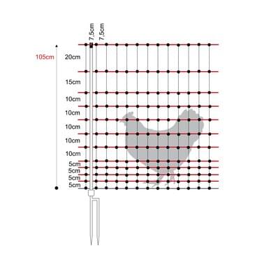 Siatka dla drobiu o wysokości 105 cm i długości 50 m została specjalnie zaprojektowana dla hodowców drobiu, którzy cenią sobie niezawodną ochronę i łatwą obsługę. Wysokiej jakości paliki z podwójnymi kolcami zapewniają bezpieczne oparcie w różnych rodzajach gleby i w szerokim zakresie warunków pogodowych.