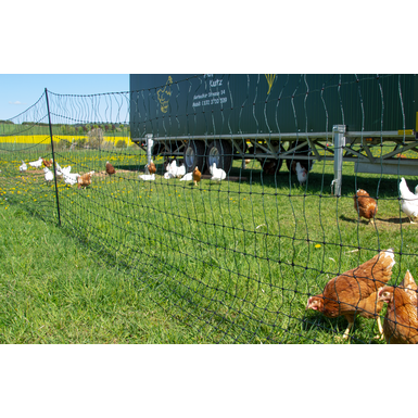 - Niezwykle stabilne słupki z włókna szklanego zapobiegają zwisaniu siatki na drób
