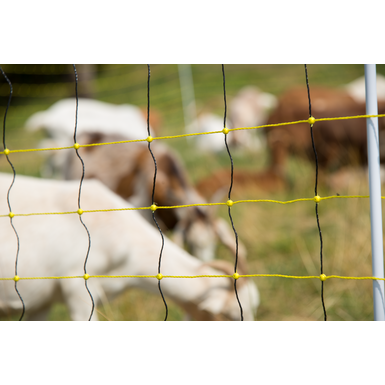 Doskonała widoczność: Przyciągająca wzrok kolorystyka z żółtymi żyłkami i białymi słupkami sprawia, że siatka jest dobrze widoczna nawet o zmierzchu. Zapobiega to przypadkowemu przedostaniu się przez siatkę zwierząt gospodarskich lub dzikich.