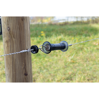 Uchwyt bramy horizont ranger® został opracowany specjalnie dla rolników i hobbystów, którzy stawiają najwyższe wymagania swoim systemom ogrodzeniowym. Jego wzmocniona izolacja sprawia, że nadaje się szczególnie do użytku z mocnym sprzętem, a obrotowa sprężyna dociskowa z ograniczeniem skoku sprężyny do 5 cm zapewnia optymalną kontrolę i bezpieczeństwo.