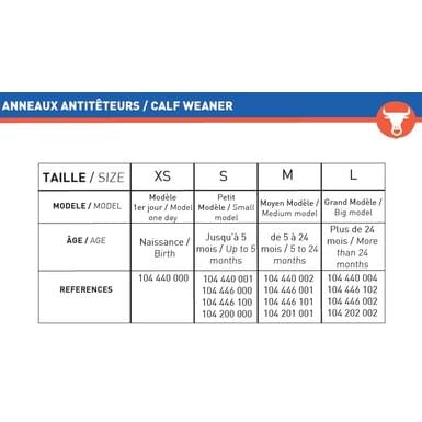Odstraszacz bydła zapobiega ssaniu w luźnych pomieszczeniach i systemach wypasu, co stanowi szczególny problem dla młodych zwierząt, ponieważ może prowadzić do uszkodzenia wymion i utraty mleka. Niebieski odsadzacz ma końcówki, jest wykonany z tworzywa sztucznego i jest idealny dla cieląt i małych zwierząt. Jest praktyczny, wydajny i ekonomiczny, ze śrubą regulacyjną zapobiegającą urazom pyska.