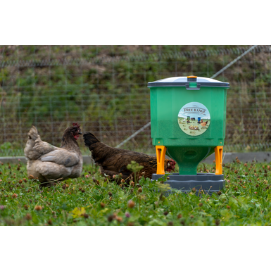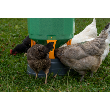 Dzięki dużej pojemności wynoszącej 35 litrów, silos do karmienia drobiu Copele może z łatwością nakarmić do 24 kurczaków.