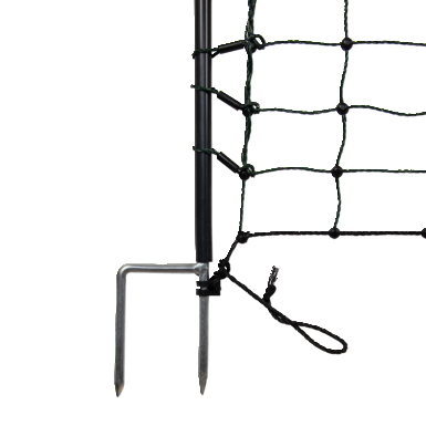 - Elastyczne i stabilne zakotwiczenie w podłożu dzięki podwójnym kolcom na tyczkach, nawet na nierównym terenie.