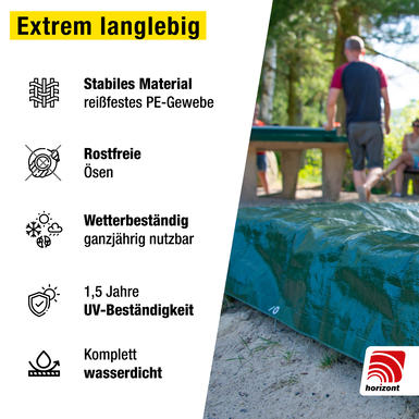 Plandeka ochronna Horizont to idealne rozwiązanie, gdy chodzi o ochronę cennych przedmiotów przed wiatrem, deszczem, słońcem i kurzem. Niezależnie od tego, czy są to samochody, meble ogrodowe, stosy drewna, piaskownice czy baseny – ta wszechstronna plandeka zapewnia kompleksową ochronę w wielu zastosowaniach zewnętrznych.