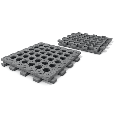 System pustych komór działa jak zbiornik powietrza, zapobiegając zapadaniu się płyt w ziemię, co oznacza, że mogą być one układane bezpośrednio na glebie lub błocie. Dodatkową zaletą systemu wtykowego jest możliwość rozszerzenia instalacji w dowolnym momencie. Płyty bez podbudowy są również idealne do rozwiązań mobilnych, np. do tymczasowej stabilizacji ścieżek na imprezach.