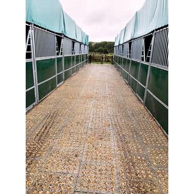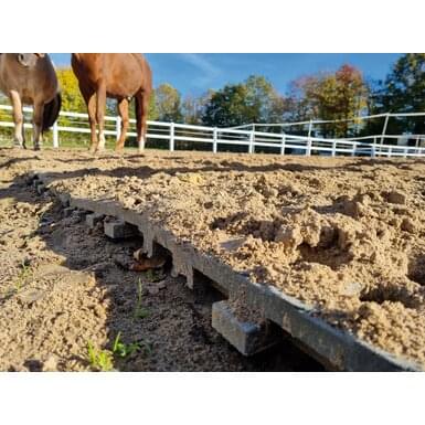 Po ułożeniu, płyty można wypełnić warstwą wierzchnią gleby, gruboziarnistym piaskiem (rozmiar ziarna ok. 0,3) lub innym materiałem przepuszczającym wodę. Istnieje także możliwość zasiania trawy w celu uzyskania zielonego podłoża. Nawet duże powierzchnie mogą być ustabilizowane w krótkim czasie, zapewniając bezpieczną powierzchnię, która bez problemu wytrzyma duży nacisk końskich kopyt.