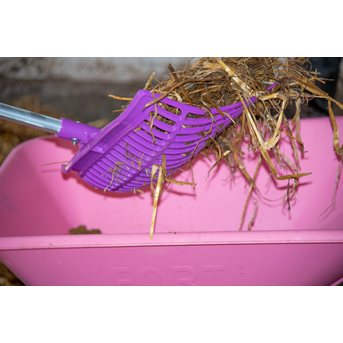 Wyjątkowo praktyczne są 18 specjalnie wygiętych zębów, które znacznie ułatwiają zbieranie trocin i obornika, wyraźnie odciążając Cię w pracy w stajni. Dzięki szerokości około 40 cm szwedzkie widły oferują idealny rozmiar do efektywnej i precyzyjnej pracy.